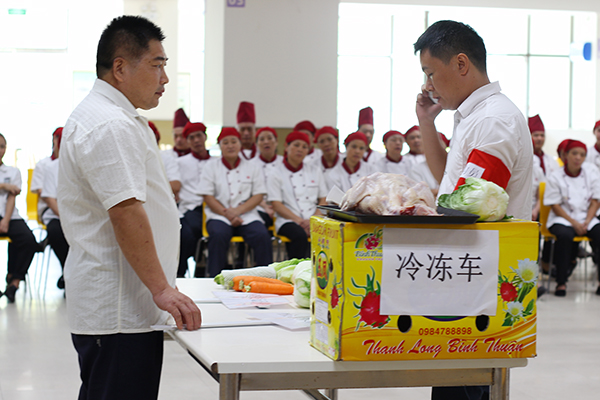 一般情況下,如果出現冷凍車故障、食材報廢該怎么辦呢?司機、餐廳負責人、企業負責人、采購、倉管、檢測員等主要人員模擬出在限時應急處置的狀況。