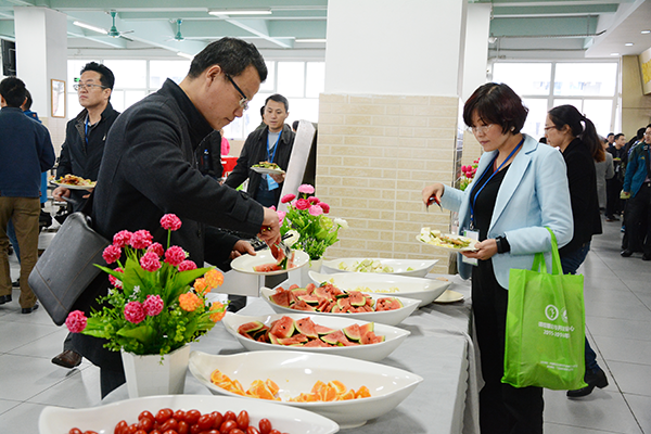 作為本次年會承辦單位的后勤支撐力量,鴻駿駐創新學院餐廳肩負著為本次來自全國各地200多家職業院校的800多名高校領導、教師的供餐重任,采取自助餐的就餐形式提供服務,現場各式各樣的菜品讓人情不自禁的想大吃一頓。精致的菜式、整潔的環境、美味的出品、專業的服務獲得參會人員的一致認可及好評,用餐結束后吸引各大高校領導、教師前來了解我司。