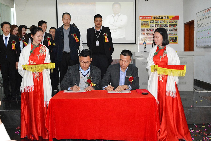 啟動會上,各項目負責人均已簽署了目標責任狀,并為由見證人營運副總經理楊進對四大旗艦店授旗。旗艦店的打造并不僅僅是運作現場餐廳的事,更是需要公司全體上下各部門的協力合作共同完成。